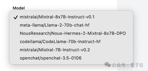 支持各种开源模型作为底座,像什么Mixtral、Llama 2、Meta的Code Llama啦,您想安排哪个就安排哪个。