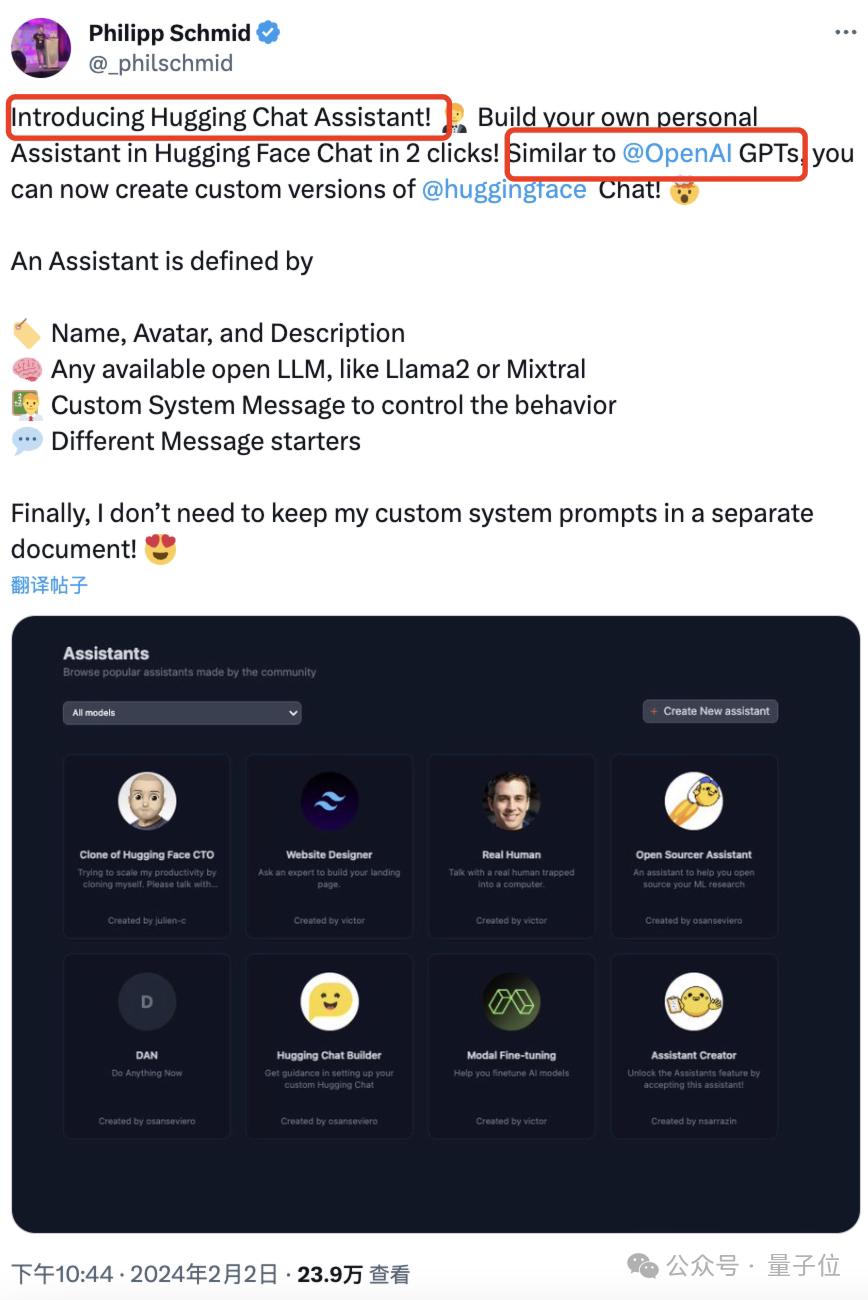 它新推出的“Hugging Chat Assistant”,也瞄准了让用户免费制定自定义聊天机器人。