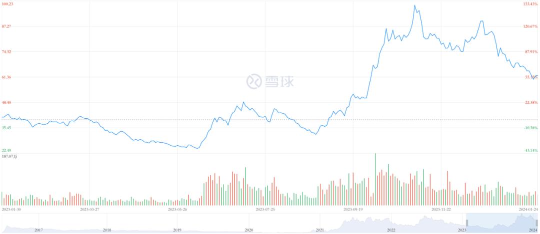 这一局,不仅公司品牌形象大幅提升,股价、市值也连番上涨。但到了2023年,市场猛地给了张兴海一记重锤。