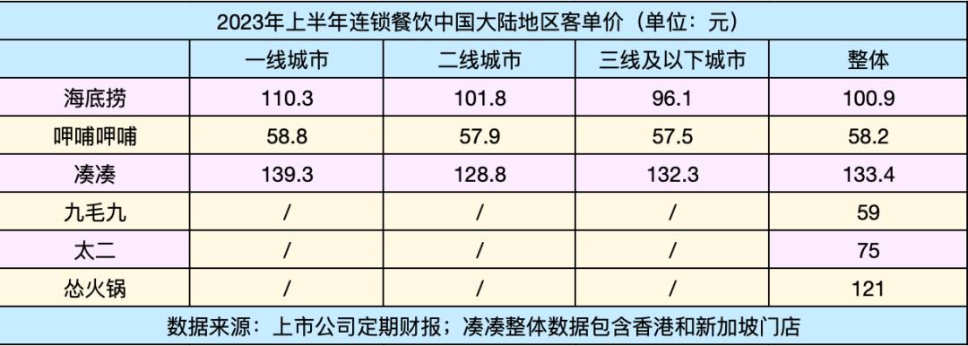 2023上半年,三家连锁火锅品牌在下沉市场的消费情况与一线城市别无二致。