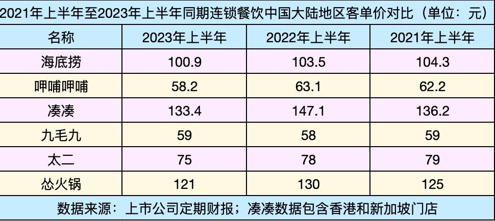乐观不起来的的可能还有呷哺呷哺旗下的品牌凑凑,2023年上半年,其翻台率从1.9升至2.1,但相比2021年同期的2.4和2019年同期的4.1,仍有相当差距。要知道凑凑取得这一翻台率还是在牺牲客单价从147.1元降至133.4元实现的。