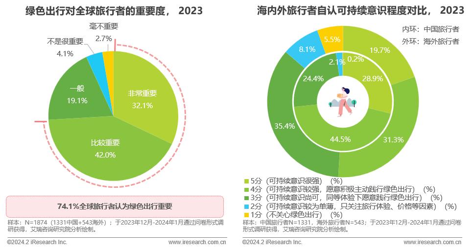 全球七成左右旅行者认为绿色出行重要,其中中国旅行者自认可持续意识更强
