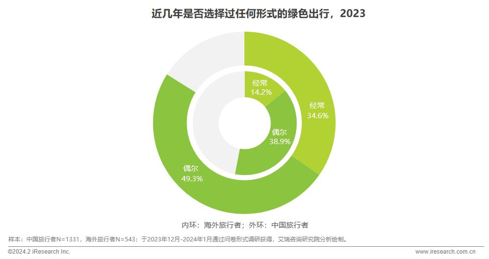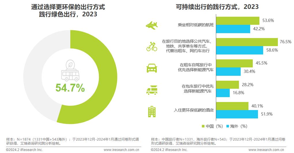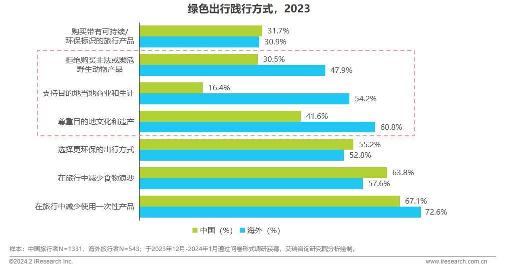 旅行者通过多种方式践行可持续出行,海内外旅行者各有侧重