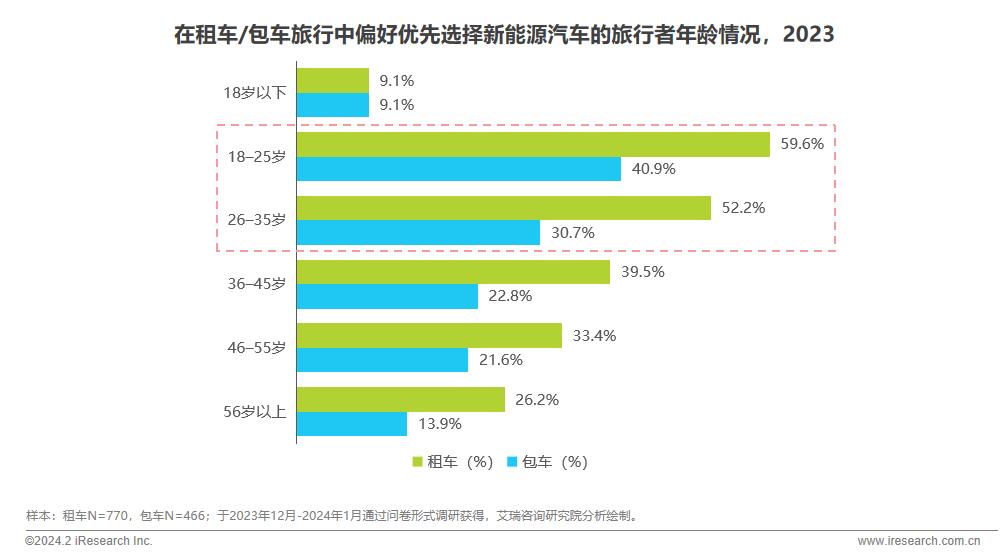 18-35岁旅行者对新能源租车/包车旅行兴趣最高