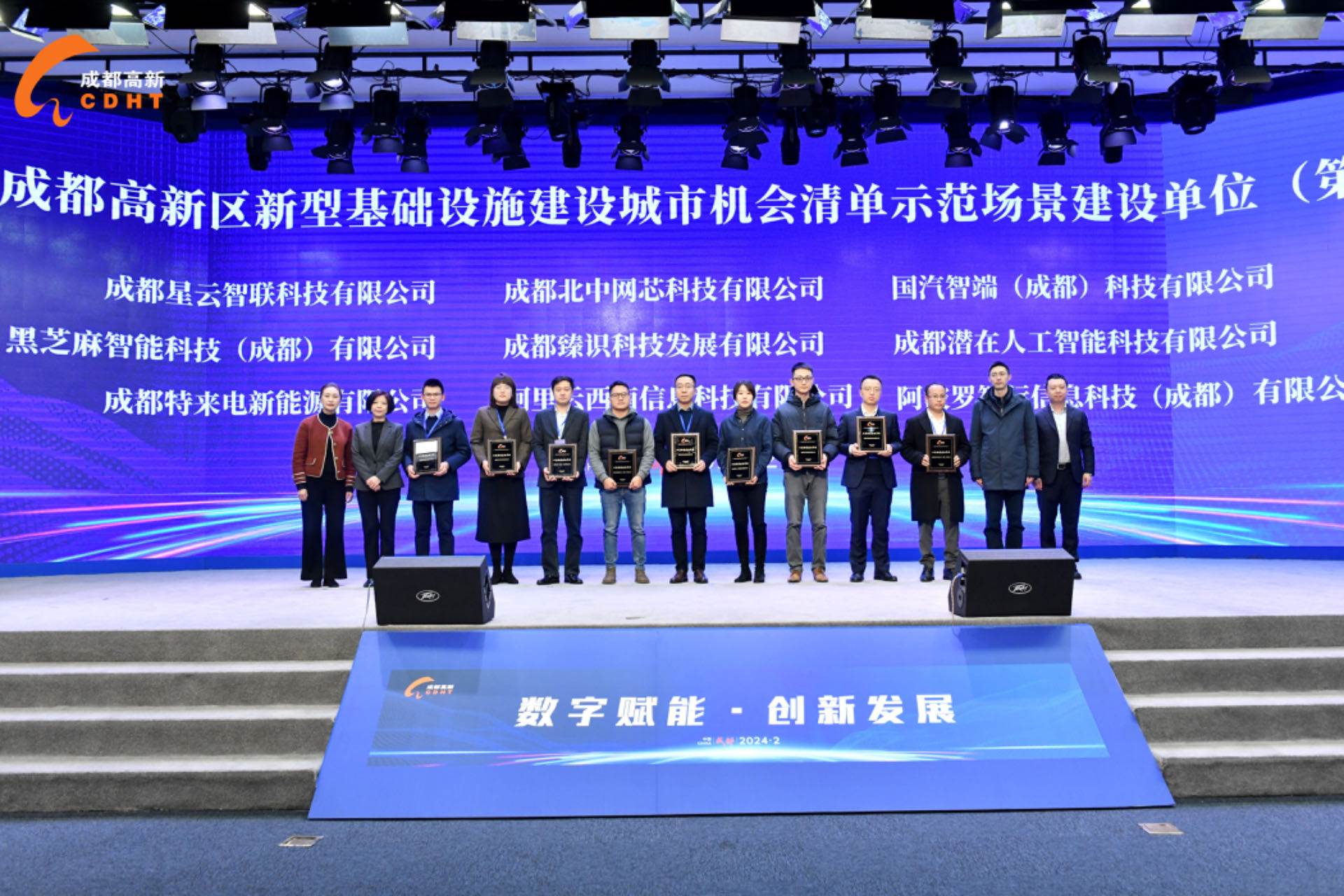 当天活动现场, 首批18家成都高新区新型基础设施建设城市机会清单示范场景的建设单位获得授牌。