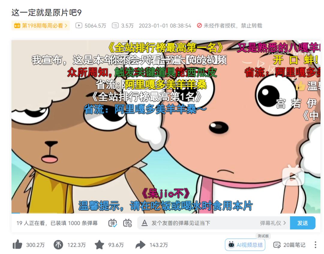 这条视频由动画区UP主“一只风风o”于2023年1月1日发布,通过对沸羊羊和美羊羊的故事线重新配音剪辑,设定了两者的情侣CP关系,讲述了一个沸羊羊因为吃醋发言惹毛美羊羊的故事。