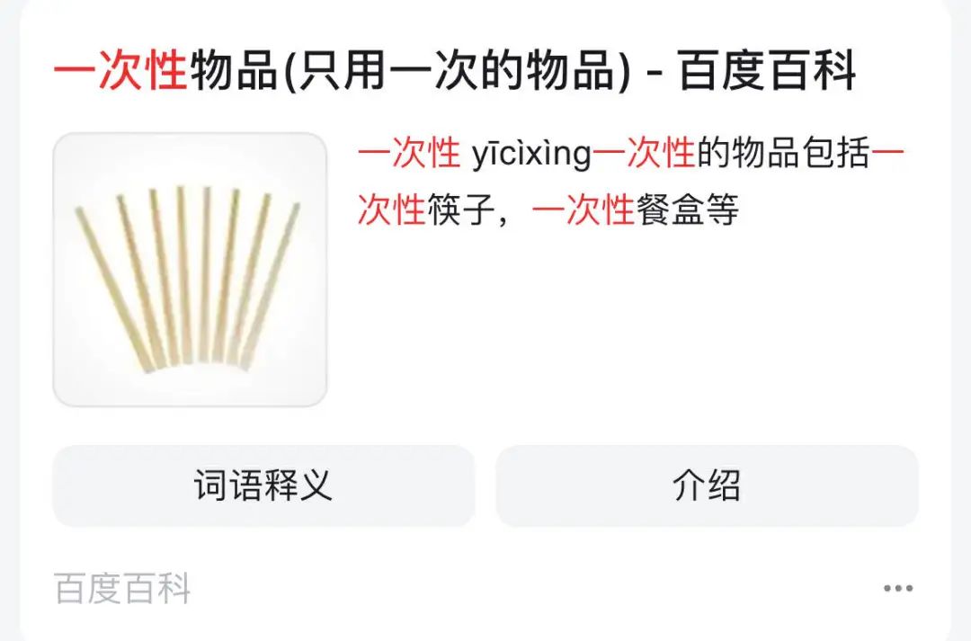 有些一次性产品并没有任何标识和详细的产品信息,出于谨慎考虑,这类产品不建议反复使用。同时,摆摆建议在平常生活中尽量直接避免使用缺乏完整标识的产品,因为缺乏正确标识的一次性制品是难以进行有效回收处置的。