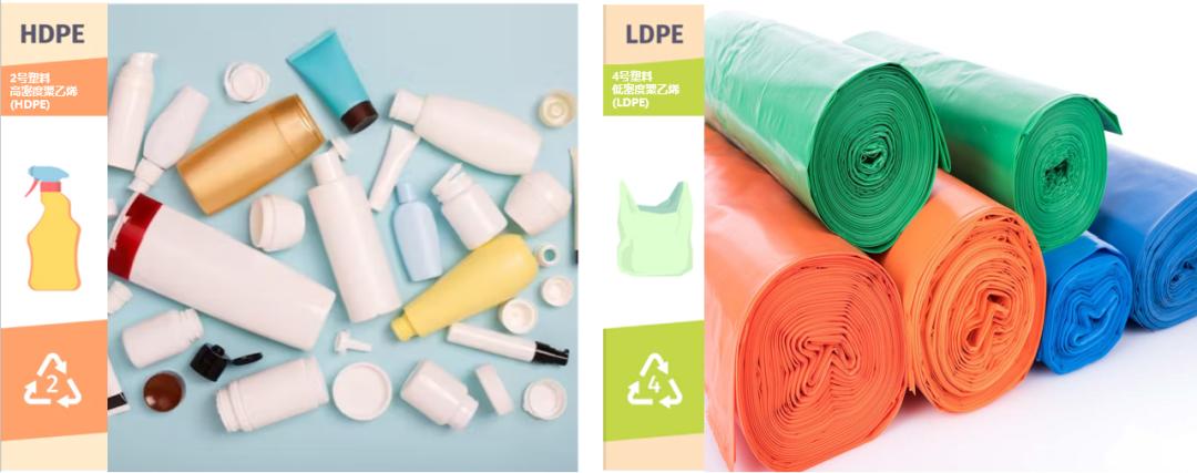 高密度聚乙烯(HDPE)、低密度聚乙烯(LDPE) 图源 | citadelpackaging、birchplastics