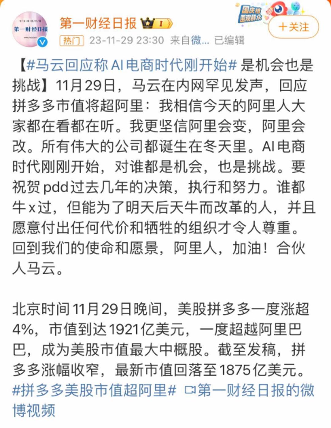 这里我们需要注意到一个背景,就是在2023年,拼多多的市值超过了阿里巴巴。