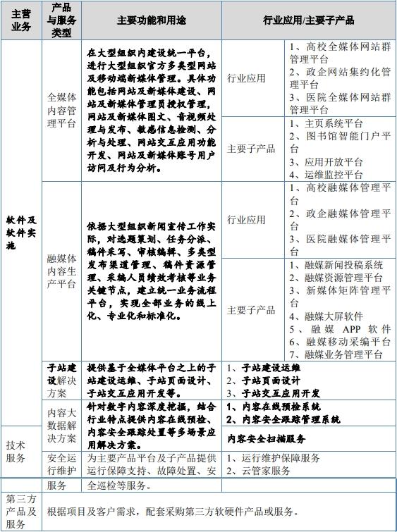犀牛之星APP显示,博达软件作为全媒体数字内容智能服务提供商,依托自主研发的全媒体内容管理平台和融媒体内容生产平台两个核心产品体系,主要面向教育、政府、企业、健康等大型组织,提供软件及软件实施、平台运维类技术服务,主营业务主要包括全媒体内容管理平台、融媒体内容生产平台等系列软件产品、子站建设解决方案、内容大数据解决方案、平台安全运维保障等技术服务及第三方产品及服务。