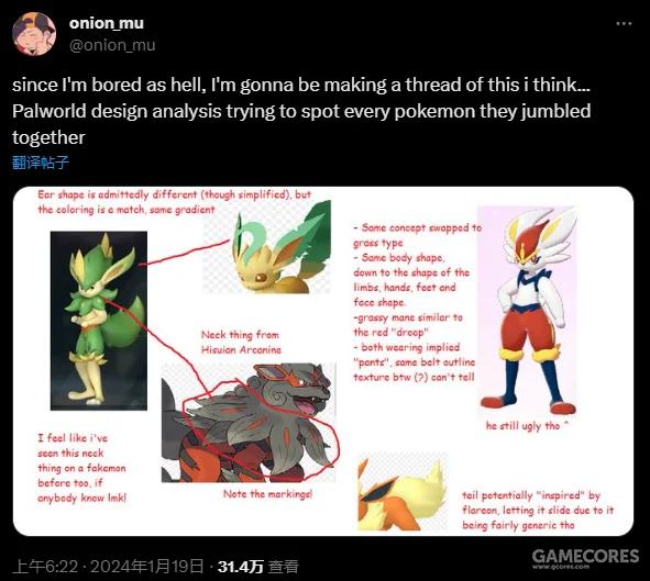 有人甚至扒出了《幻兽帕鲁》的角色造型和《宝可梦》高度类似,只是外表细节有所不同。