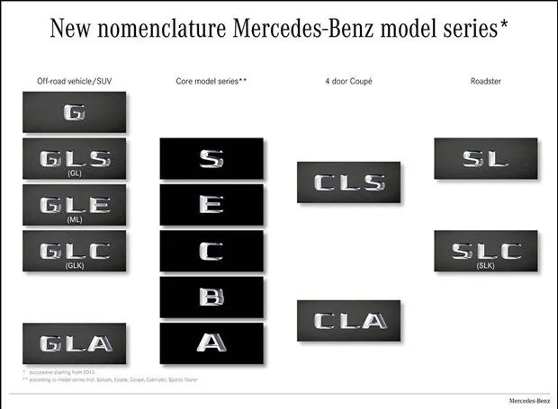 相比较而言,奔驰的命名法则在之前可能就显得有些凌乱,否则奔驰也不会大费周章地对车系进行重新梳理并更名。