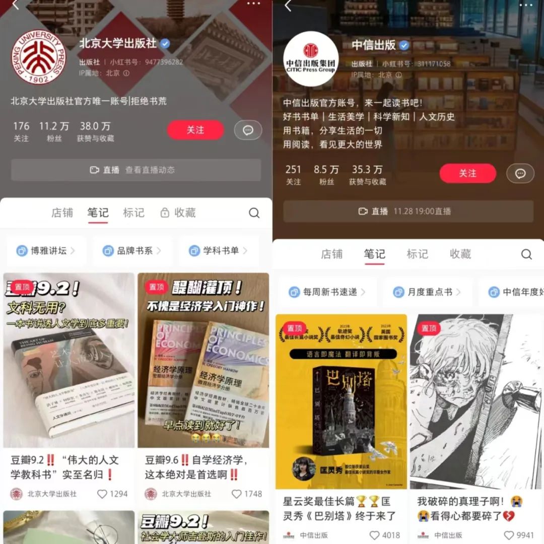 小红书上,@中信出版 、@理想国 、@北京大学出版社 等多家出版社已经开通了小红书账号和店铺,并创建了小红书读者聊天群,通过这些途径,和读者进行交流,帮助出版社找到读者、了解读者,最终实现种草。