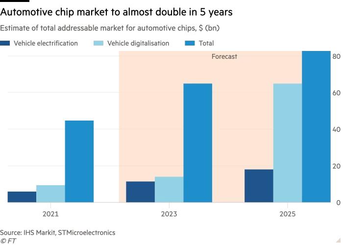 据业界预测,2025年汽车芯片市场规模将比2021几乎翻一倍,每辆汽车的平均半导体成本将从2020年的700美元上升到2028年的1138美元。
