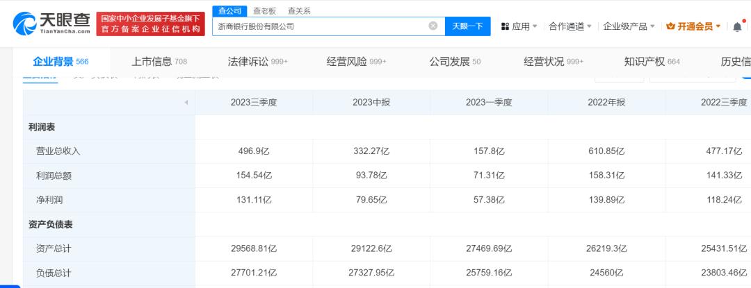 其次在成长性方面,天眼查APP显示,在最近一年来,浙商银行的营收增速确实有所放缓,2023年前三季度只有4.13%,与2022年同期的18.06%相差甚远。