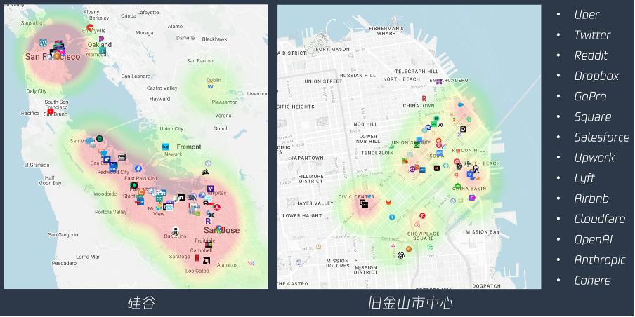 再举一个更新鲜的例子,我们前一阵子去美国旧金山开会,顺便访谈了一些硅谷湾区的科技行业从业者,我们本以为这波儿AI浪潮又是在硅谷出现,但他们说这次其实是在旧金山,很有意思。