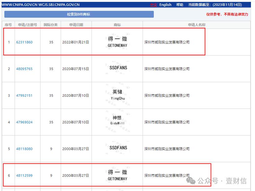 但是查询公开资料却发现,得一微的一同行公司拥有中文“得一微”字样的商标。
