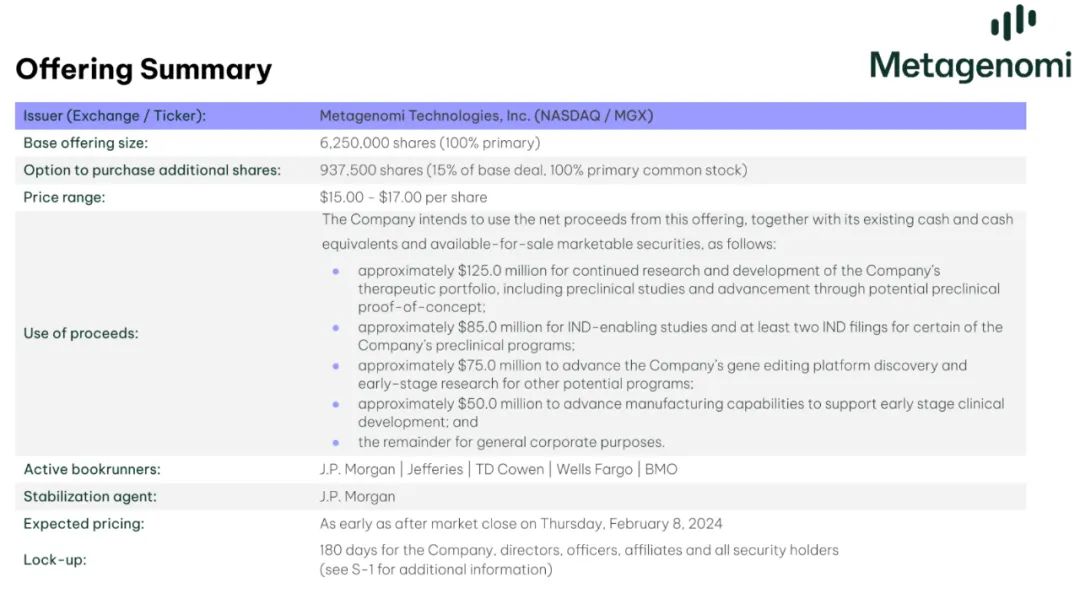 Metagenomi冲刺纳斯达克:拟募资1亿美元,拜耳医药是股东,路演PPT曝光