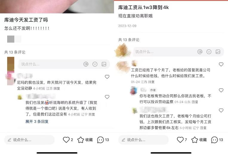 小红书、抖音等各大平台,随便一搜,联营商对库迪的吐槽已经多如牛毛。比如两个联营商写了两封公开信,再比如有前员工爆料其所在门店存在物品混用、偷工减料等问题。近期又有不少库迪员工在小红书上爆料,揭露了库迪发工资不及时,以及降薪、拖欠工资等情况......