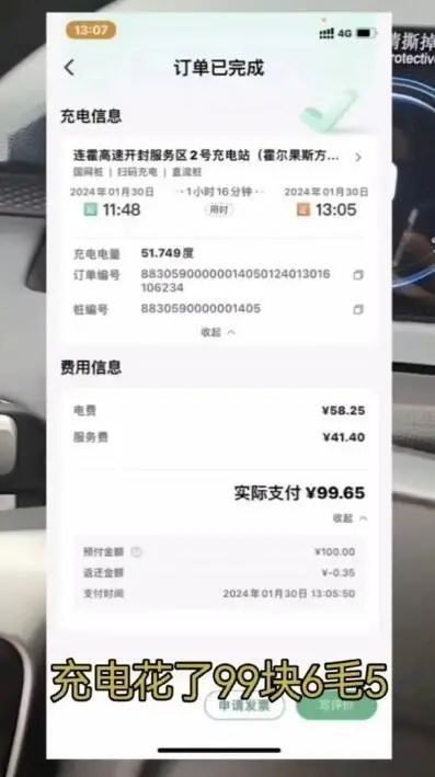 近日,一男子拍摄的质疑充电桩收费高的视频引发关注并上了热搜。视频显示,该男子在连霍高速开封服务区2号充电站(霍尔果斯方向)充电,一共花了99.65元,其中电费58.25元,服务费41.4元。