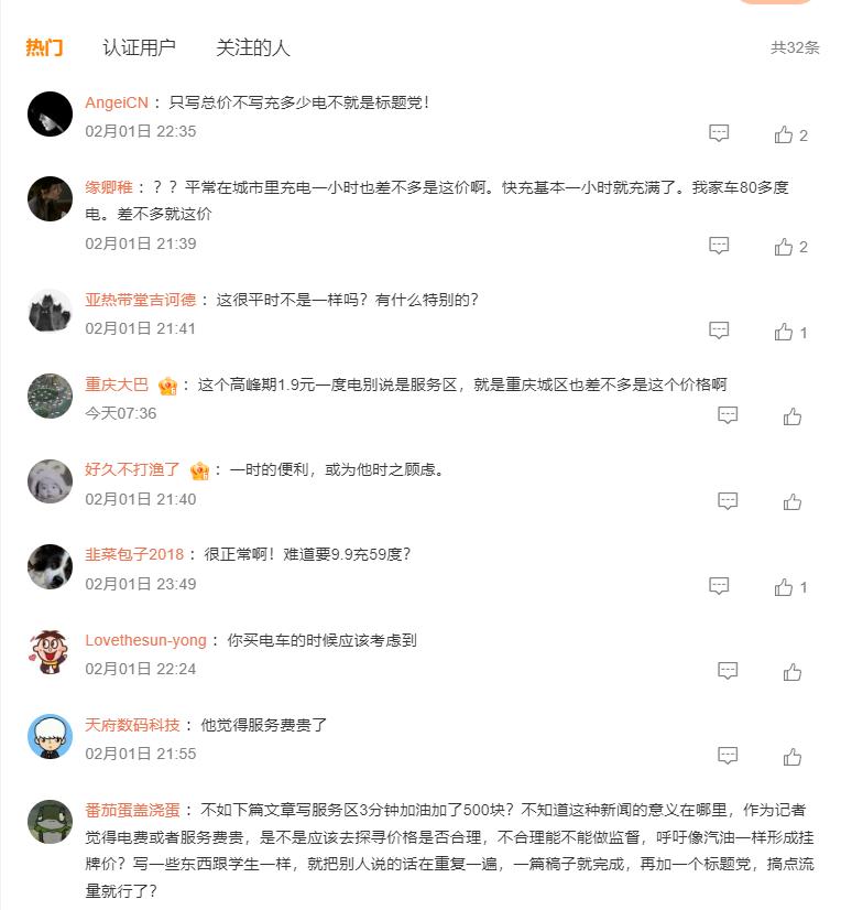 充电1小时花99元,被不少消费者吐槽太贵了,毕竟,一直以来,电价便宜,用车成本低一直是一大共识。但是官方也回应了,本身就是如此,嫌贵就不要充了。这引发了消费者大规模的吐槽——“让你省油,没让你省钱。”、“这才刚开始,以后会越来越贵”。