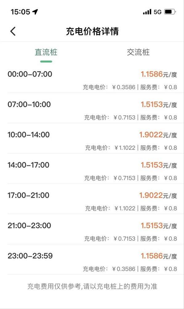 但根据充电1小时99元的充电站回应,电费分为三个时段,每个时段价格不一样,服务费都是每度电0.8元,三个时间段充电单价分别为,高峰期每度电1.9022元,平峰期每度电1.5153元,低谷期每度电1.1586元。