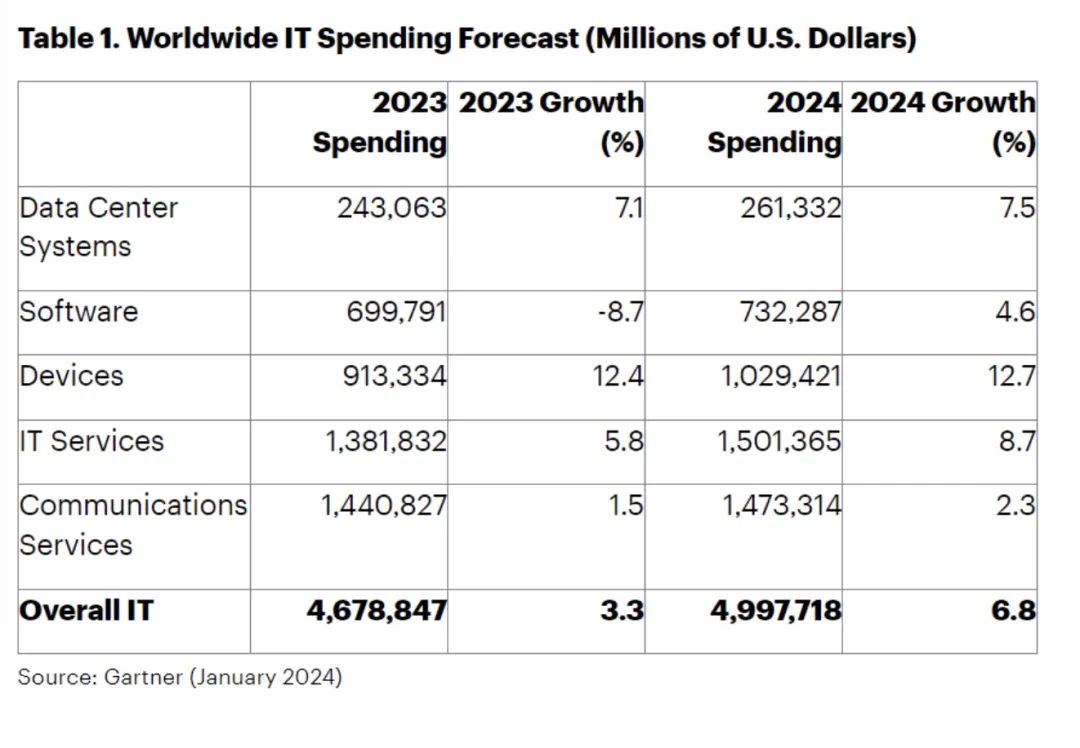 2023年总体IT支出增长率为3.3%,图源:Gartner