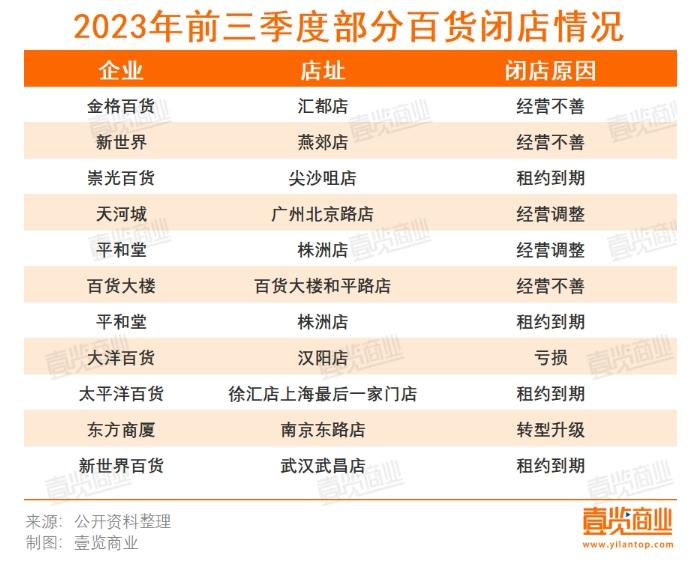 如今百货商场正经历闭店潮。据壹览商业不完全统计,2023年全国范围内至少有11家百货商场停业闭店,其中,不乏太平洋百货、新世界百货等知名百货。而这样的趋势,还在延续。对租金成本不断升高、利润率逐年下降的百货商场来说,关店成为唯一选择。