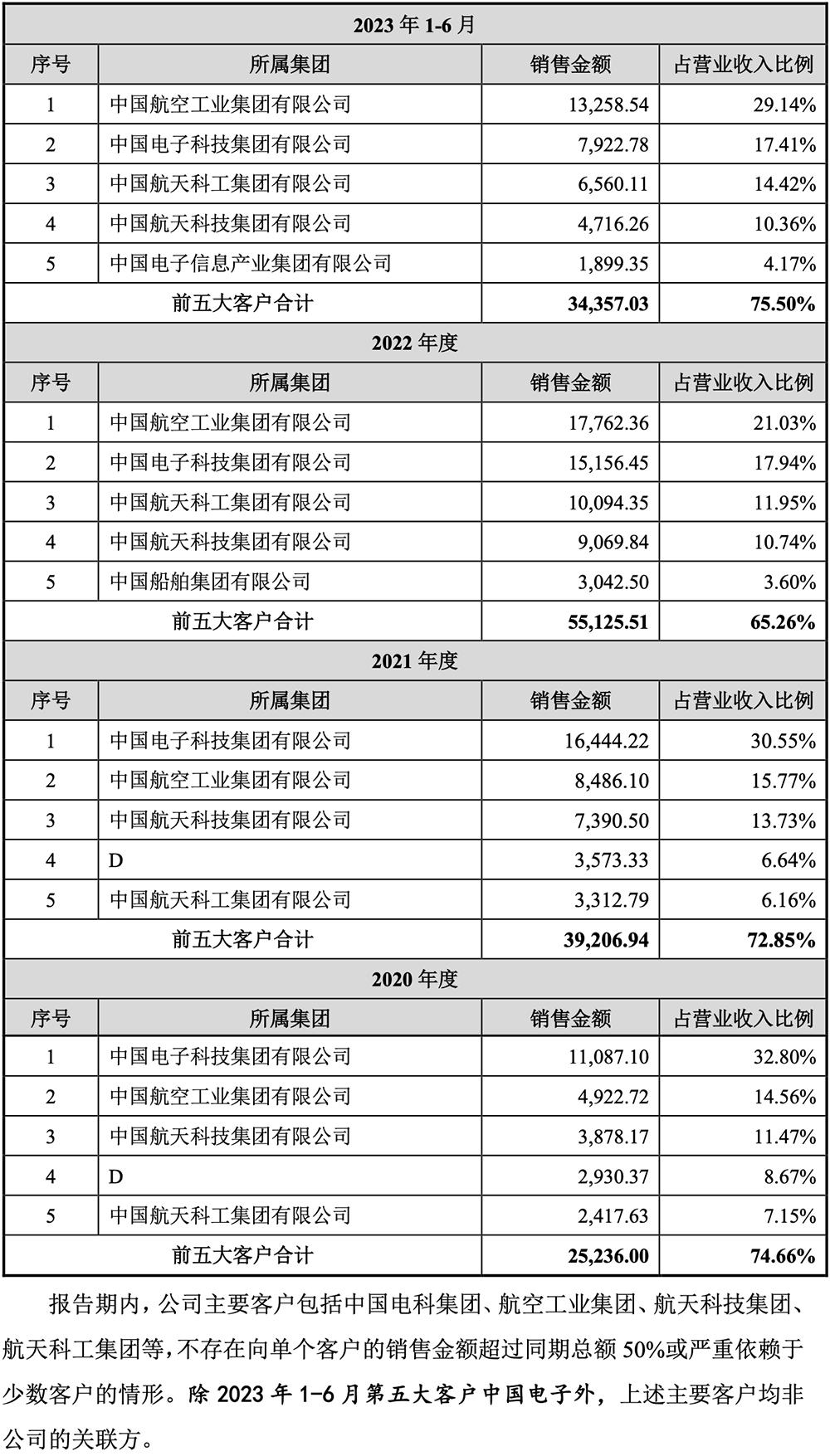 报告期内,该公司前五大合并口径客户合计收入金额分别为2.52亿元、3.92亿元、5.51亿元、3.44亿元,占当期营收比例分别为74.66%、72.85%、65.26%、75.50%。其按单体口径的前十大客户合计收入金额占营收的比例均在40%以上,形成了相对稳定的合作关系。