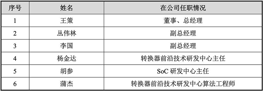 该公司目前拥有核心技术人员6人,分别为高性能FPGA、高速高精度ADC、智能SoC领域的研发带头人以及公司检测技术及平台建设的主要负责人,均对公司相关方向的研发项目的承接、先进技术的突破及产品的产业化作出了重要贡献。