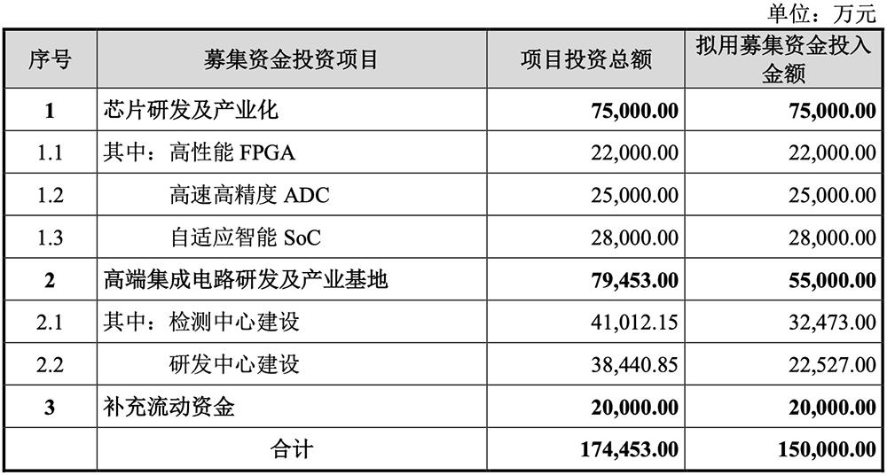 此次IPO拟募资15亿元,用于芯片研发及产业化、高端集成电路研发及产业基地等。