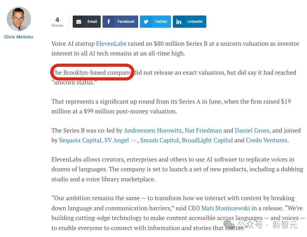 最近,成立刚满两年的AI音频公司ElevenLabs宣布,他们获得了8000万美元的B轮融资,估值超过10亿美元!