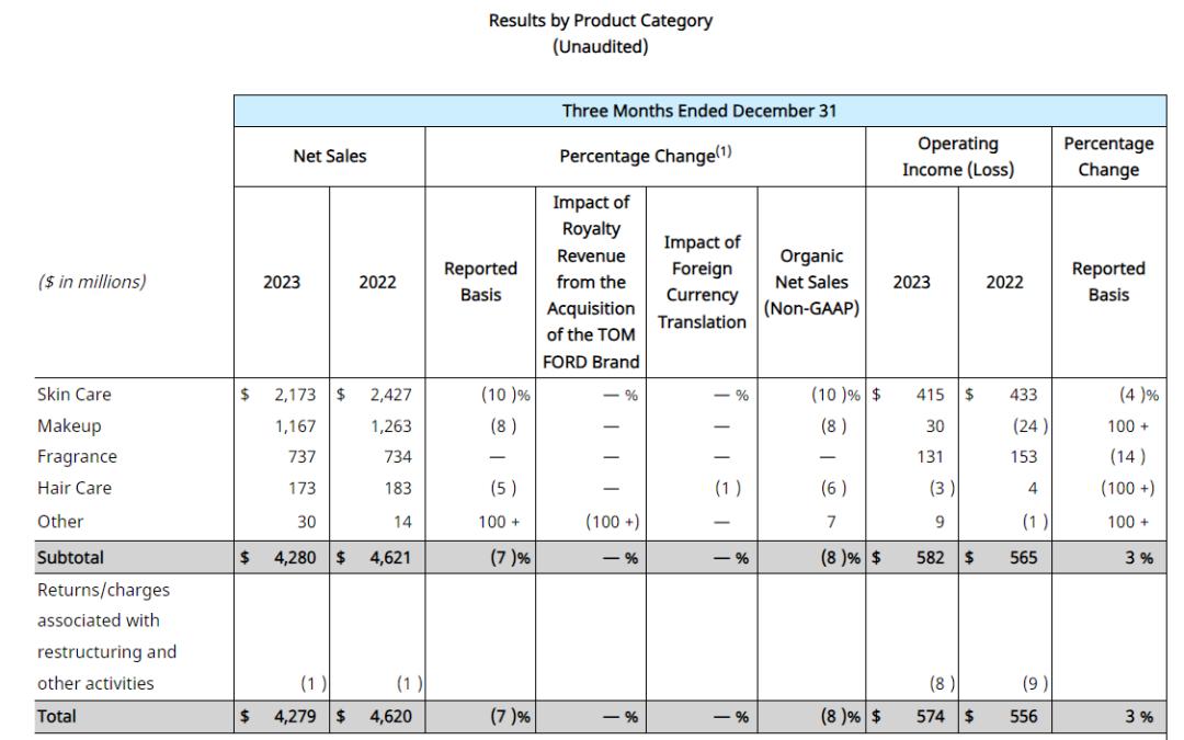 财报指出,集团在中国大陆市场的净销售额下降,与旗下护肤品牌在双11全球购物节期间销售额下降有关。