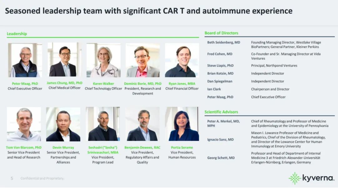 2023年8月,Kyverna又完成6000万美元的B轮延期融资,投资方包括贝恩资本生命科学和 GordonMD ® Global Investments LP,以及原有投资方吉利德、Westlake Village BioPartners、Northpond Ventures、RTW Investments、LYFE Capital等。