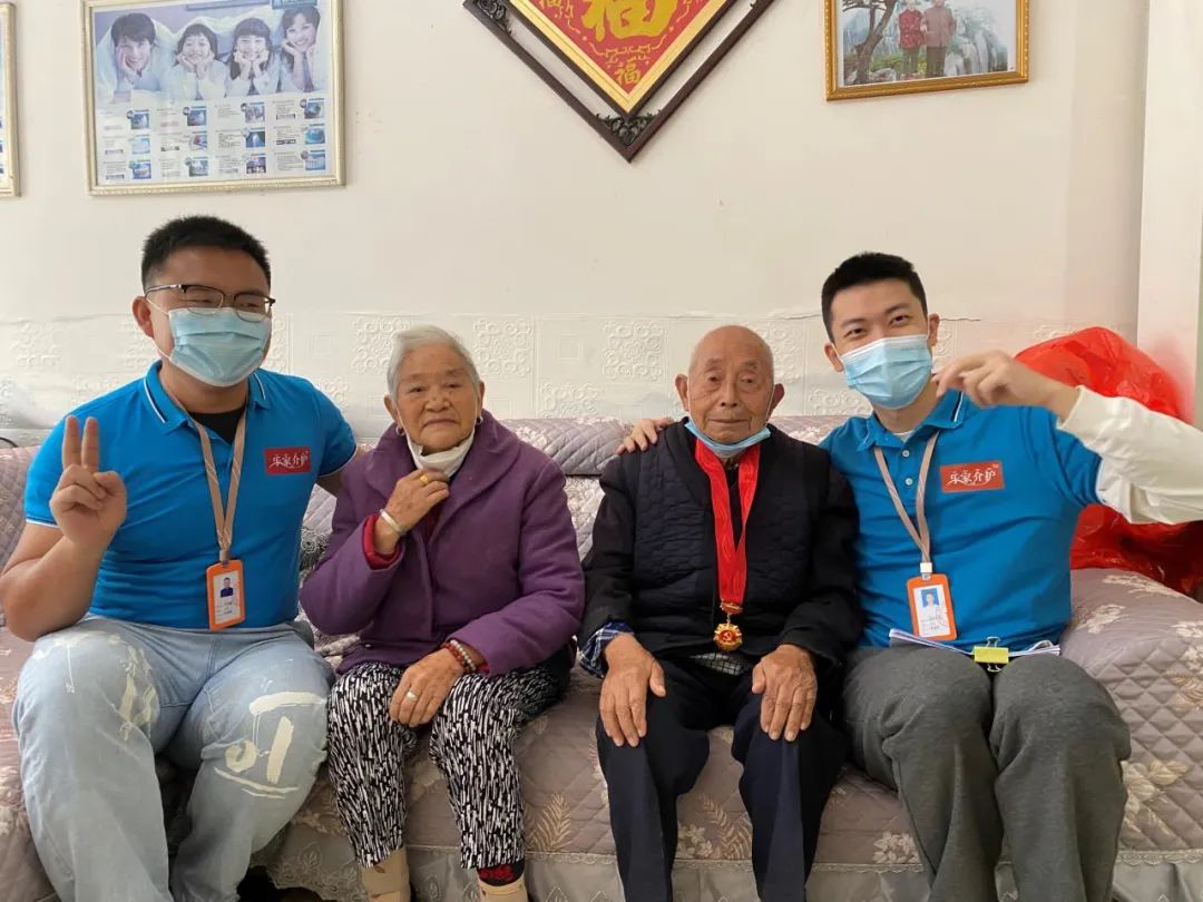 ▲ 晏杨俊祺(右一)工作结束后和老人合照