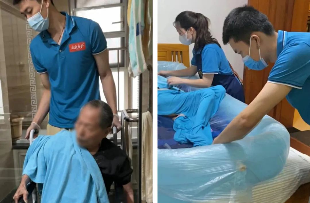 随着服务次数增加,维护老人尊严这件事也逐渐成了下意识举动。比如给老人脱衣服时,他们会全程将他盖在一个大毛巾下面,边脱衣服边移动毛巾,确保看不到老人的身体。