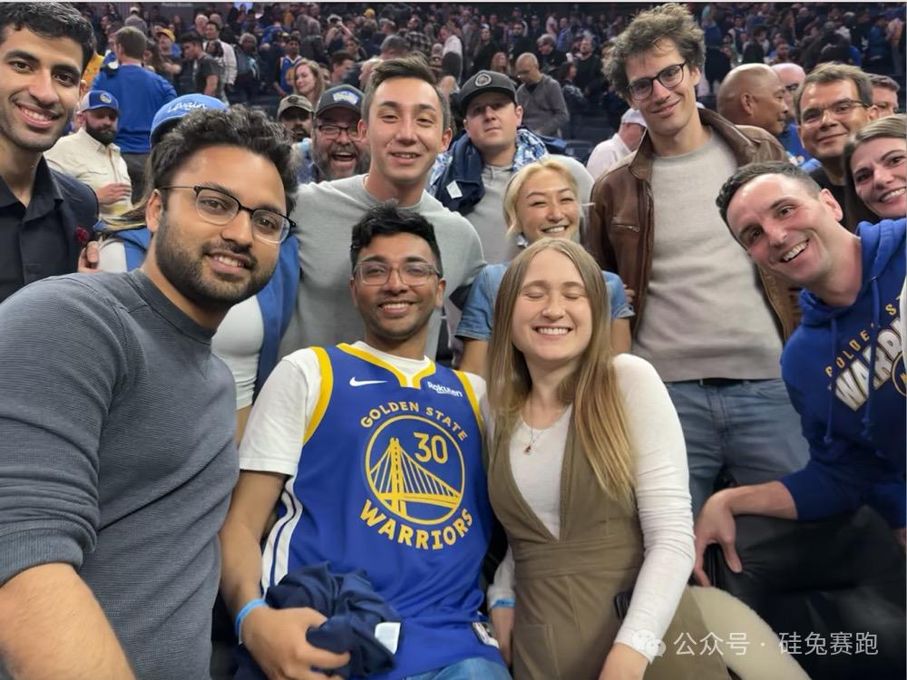 在勇士队的比赛现场,Conviction 的员工和我们的几位创始人、朋友、同事在一起。