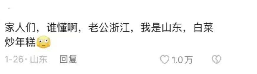 有网友是山东人,老公浙江,现在过年,他们家里的饭就变成了——