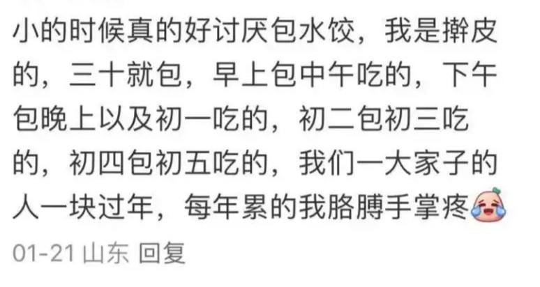 而对于年轻人来说,过年无疑更让人想起被饺子支配的恐惧,从年三十到十五,睁眼饺子闭眼饺子,吃顿顿顿顿顿ⁿ饺子。