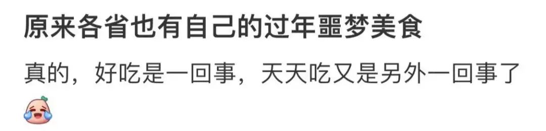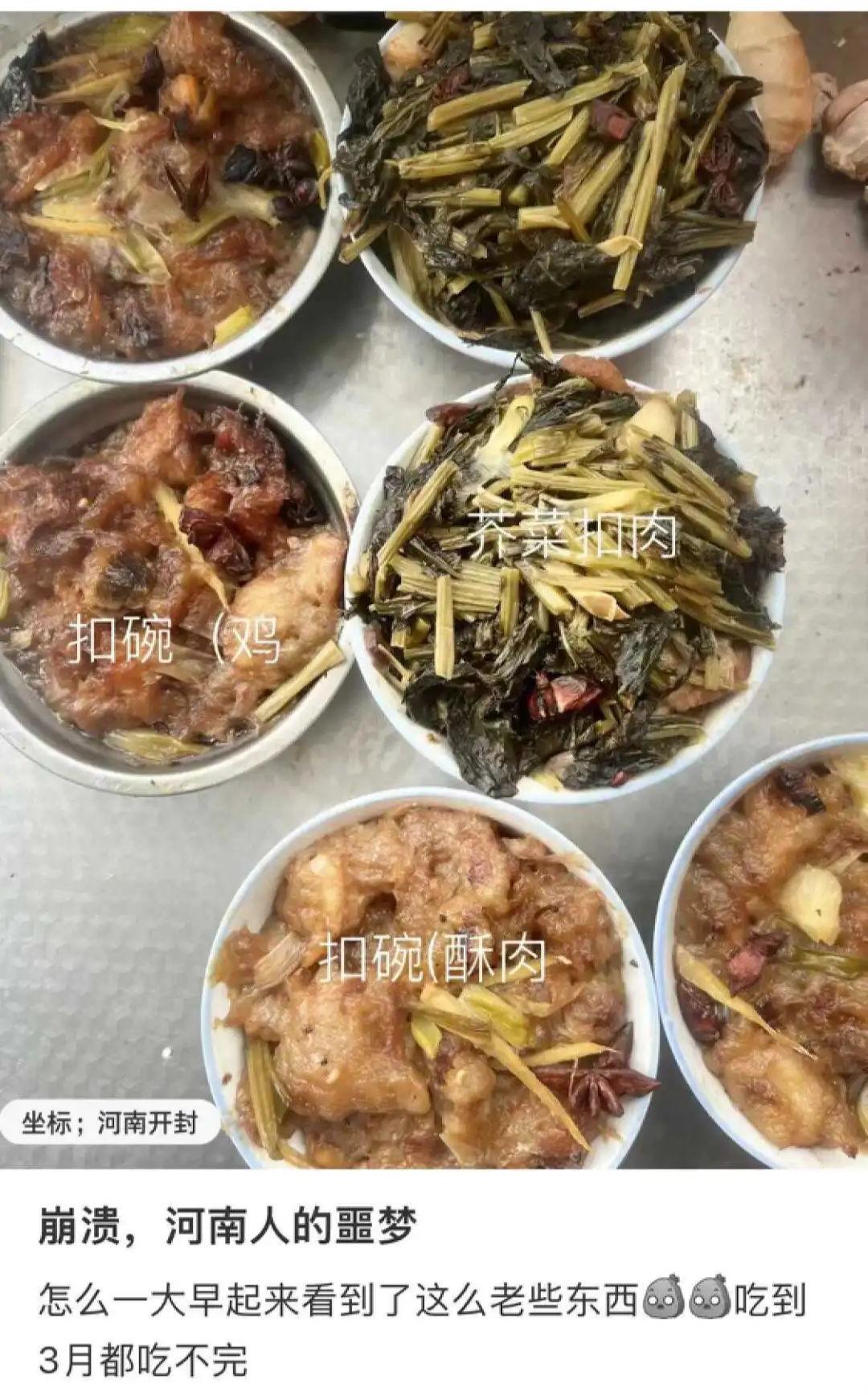 其他省份也没好到哪里去,在过年的饭桌上,各家有各家的馅料,但都逃不过那几样。