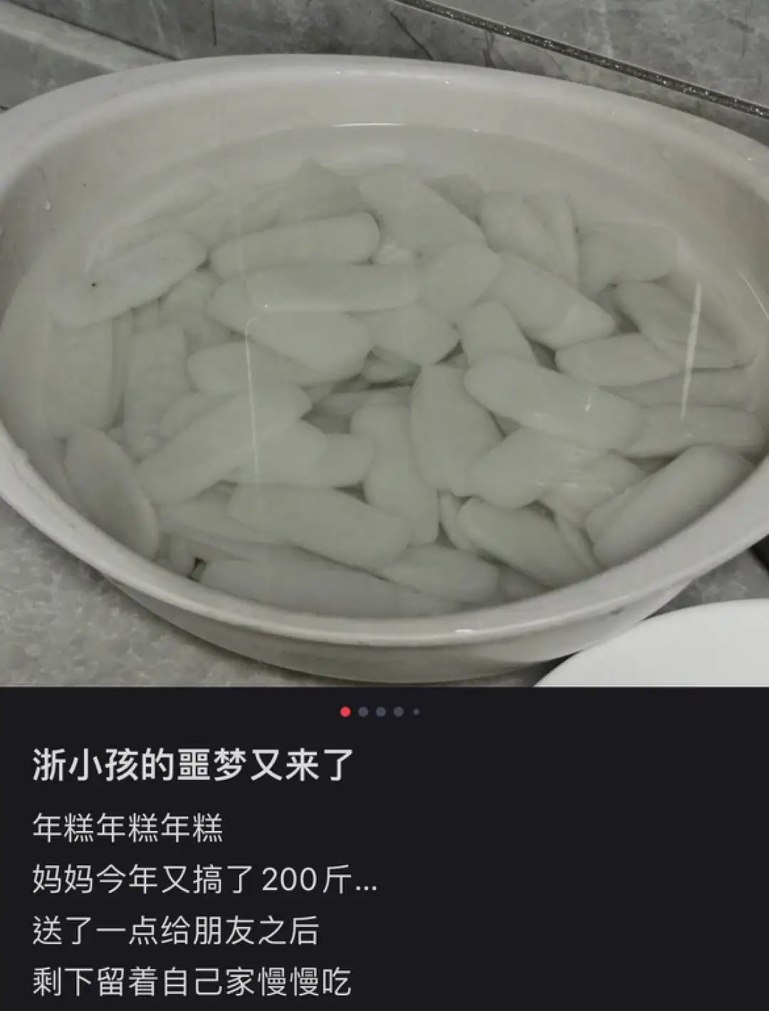 对浙江人来说,冬天的年糕噩梦不是一碗年糕那么简单,而是一盆年糕,一篮年糕,一袋年糕以及一缸年糕。