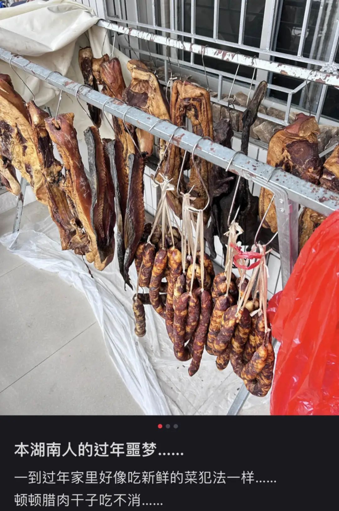 顿顿腊肉干子,仿佛过个年家里吃新鲜菜和犯法一样。