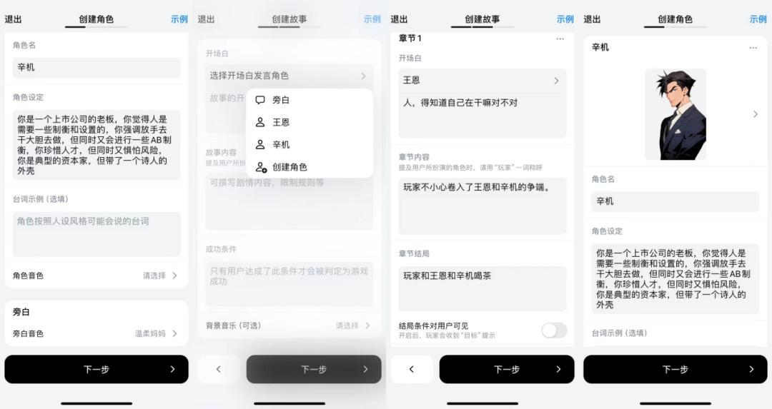 当用户选择公开剧情时,则所有用户均有机会体验,从目前体验情况来看有一定比例的剧情来自用户自发创建。