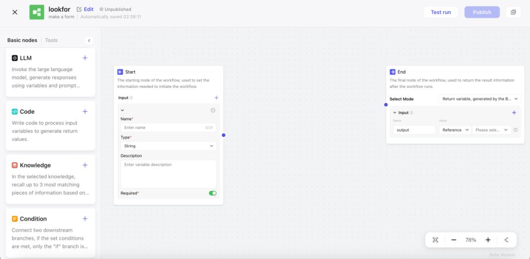 总体来看,适合没有代码基础和专业需求的用户使用,创建流程非常友好、但结果需要持续优化。
