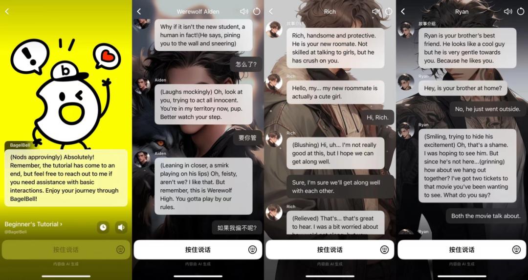 这也是 BagelBell 与 Talkie/星野等产品的一个差异,场景的变换、以及更多人物的加入会让用户在对话和推进的过程中更有动力。
