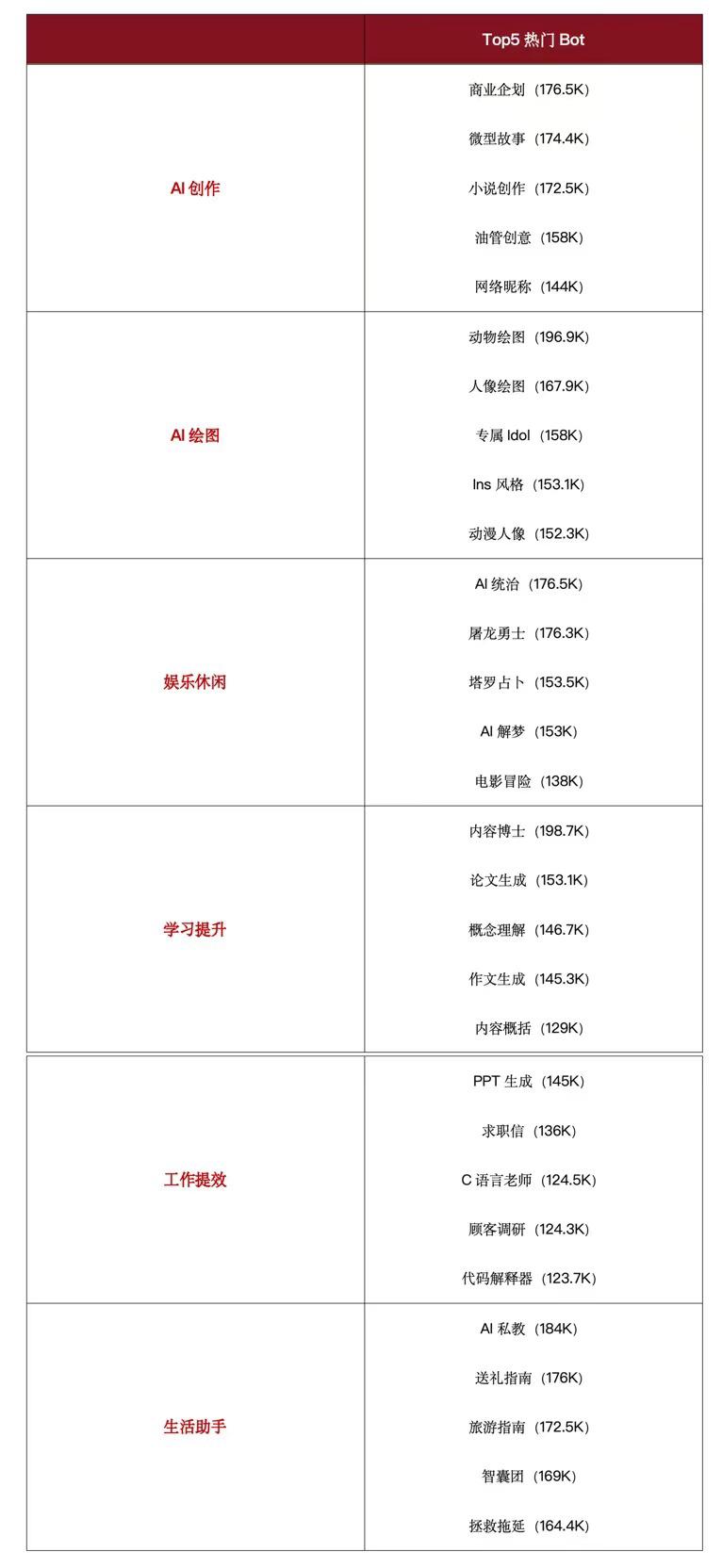整体来看,小悟空的平台 AI Bot 以工具类为主,实用性的 Bot 热度更高。