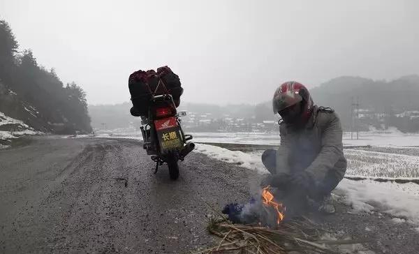 遇到大雨,衣服会淋湿甚至结冰,遇到道路结冰,摔跤也是常有的事,大多数时候,这些摩托车返乡大军只能在路途当中风餐露宿。
