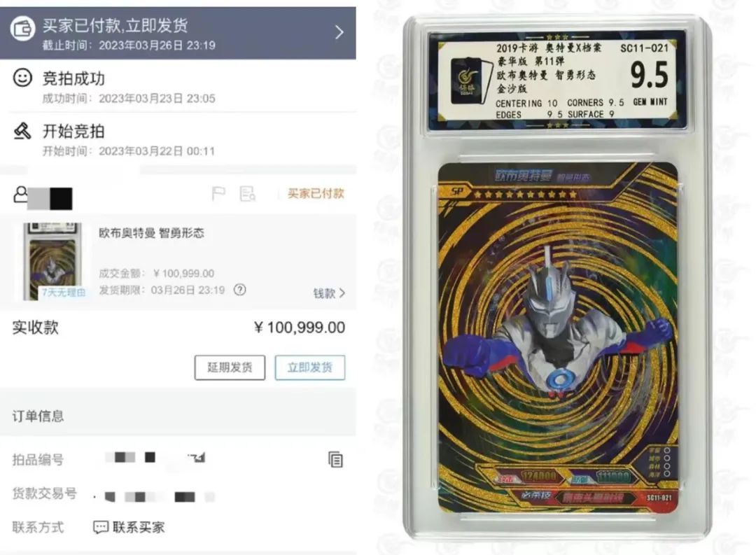 在去年3月份,微拍堂某店铺一张“欧布奥特曼智勇形态卡牌”,竟拍出100999元的天价,创下微拍堂卡牌类交易金额新高,价格之疯狂让人瞠目结舌。