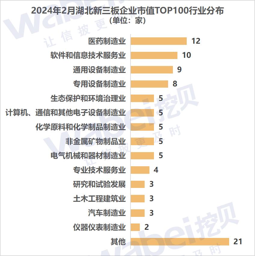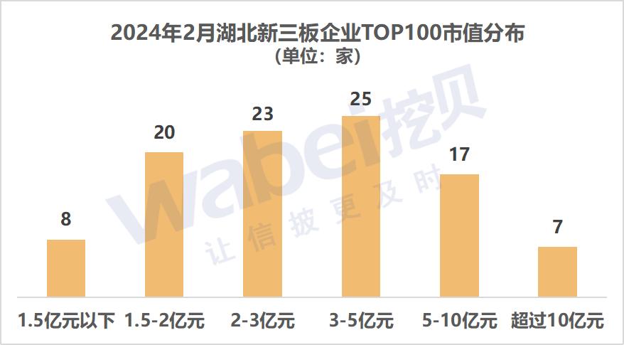 挖贝研究院梳理出2024年2月湖北新三板企业市值TOP100(以下简称:“榜单”或“TOP100”),7家企业市值超过10亿元,12家企业冲击北交所。