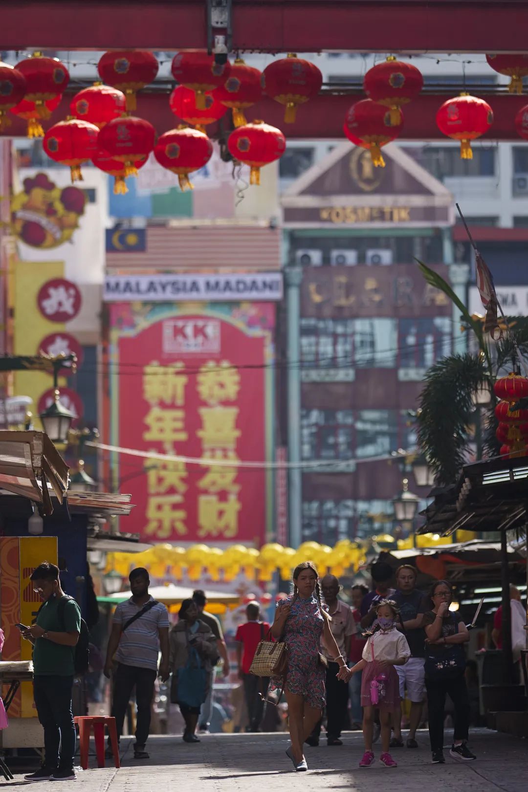 当地时间2024年2月10日,马来西亚吉隆坡,马来西亚华人走过中国城。(图/视觉中国)